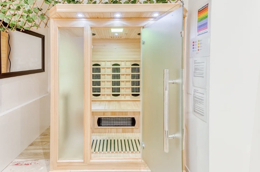Our Infrared sauna is not only a more comfortable alternative to traditional saunas and steam rooms, it has additional health and wellbeing benefits too. For people who find the heat in a traditional sauna too intense or simply don’t enjoy sitting in a hot ill-lit room with half naked strangers, an infrared sauna is a great alternative as the heating effect is much more gentle and you get to sit in the sauna alone with your own choice of music if you desire. All round, a session in our infrared sauna is a deeply relaxing experience which improves blood flow, eases pain and has a wide range of health benefits.
